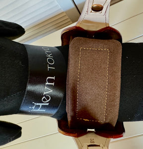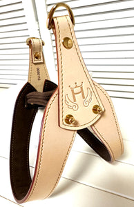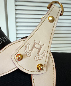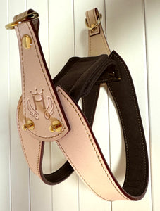 表はイタリア産のヌメ革を、裏はクッション材を抱かせた人工スエードを用い、高級感と機能性をかねそなえた究極のハーネスです。